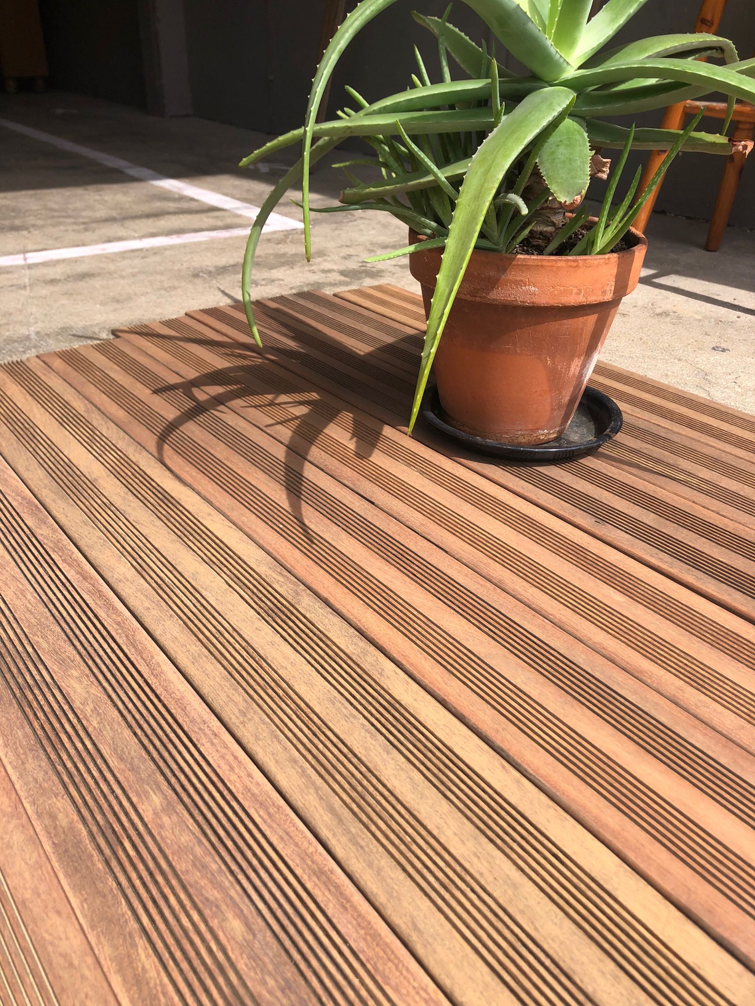 Sol, plancher, terrasse en bois extérieur, bardage (mural ou sous toiture), mobilier d’extérieur (tables, bacs, bancs), habillages ou platelages type loggia, passerelle, balcon.